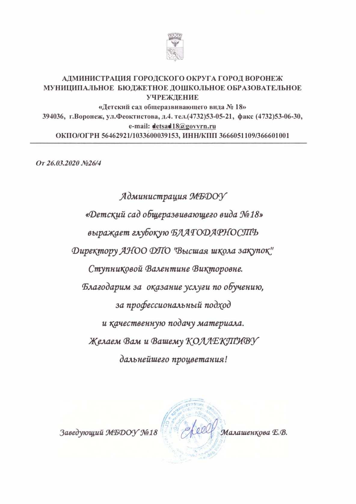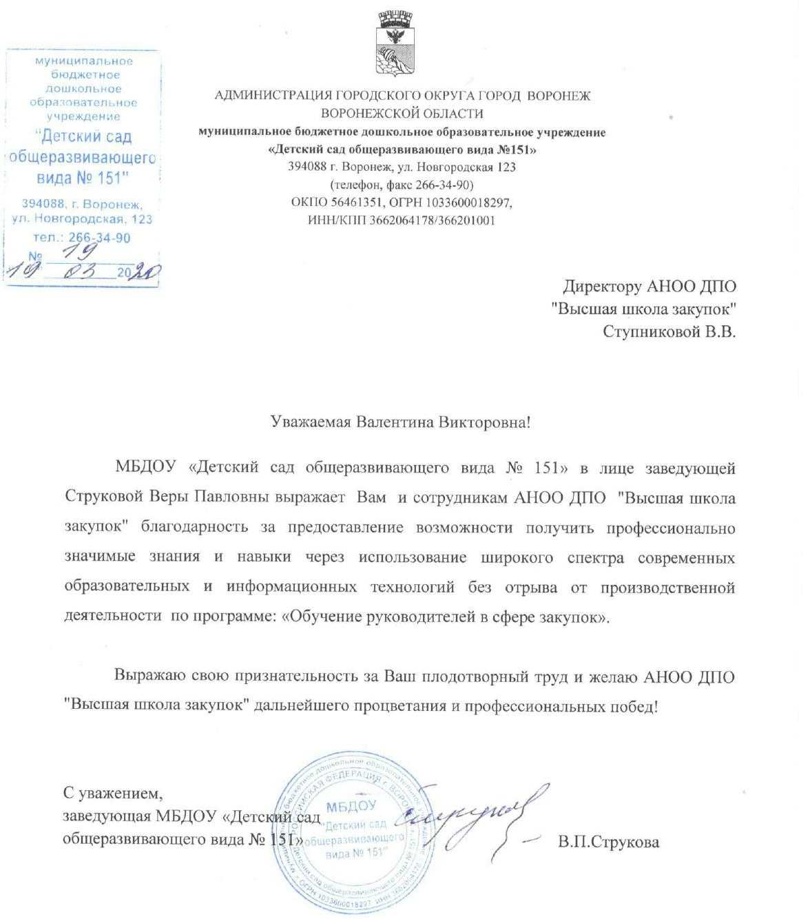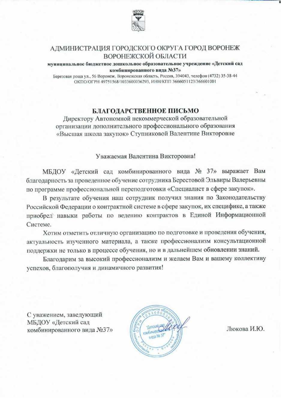 Благодарственные письма