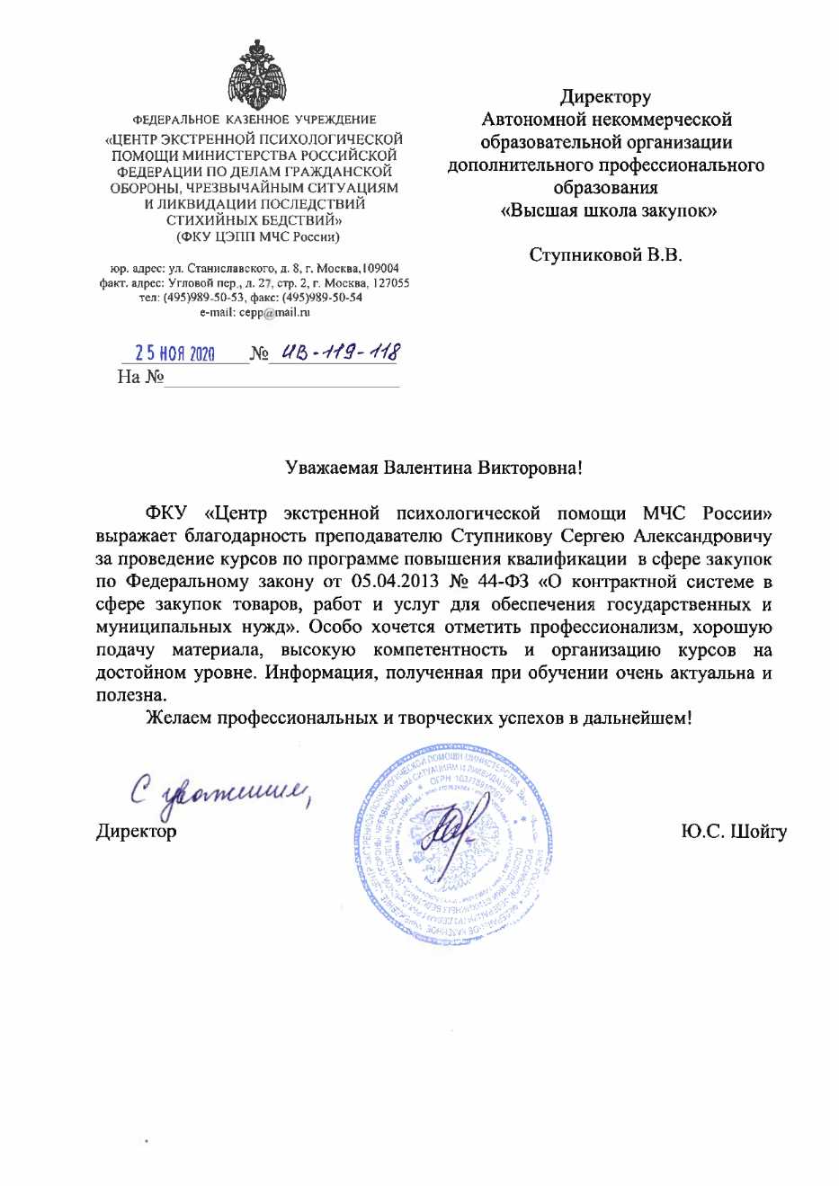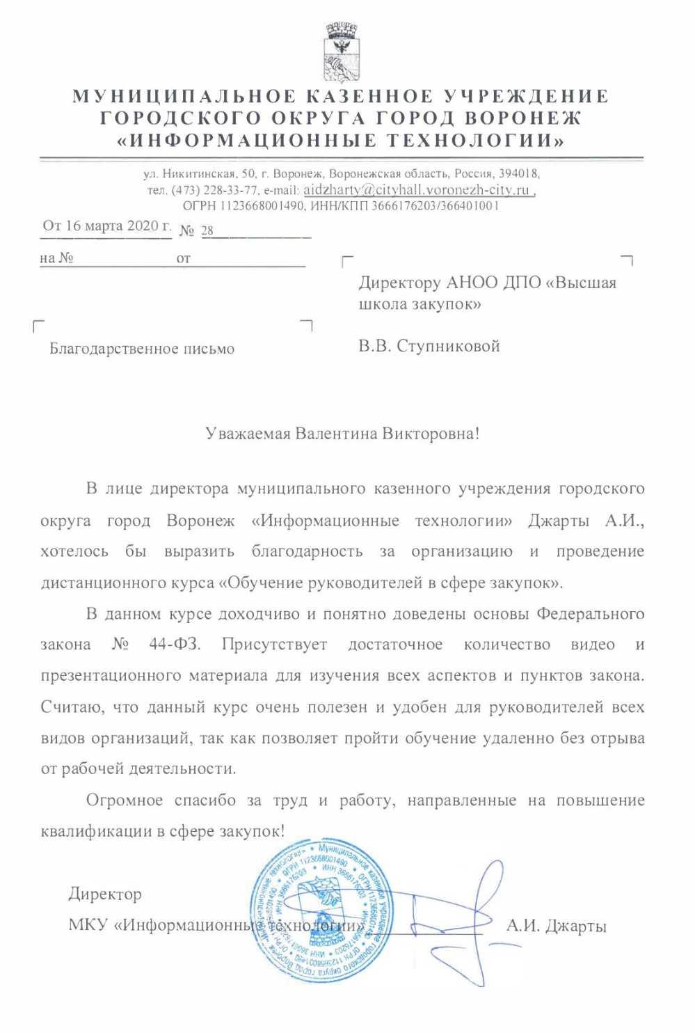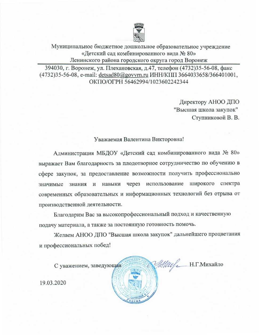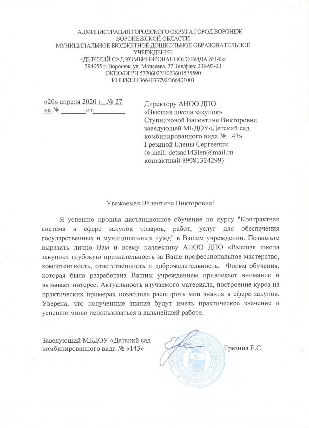 Благодарственные письма