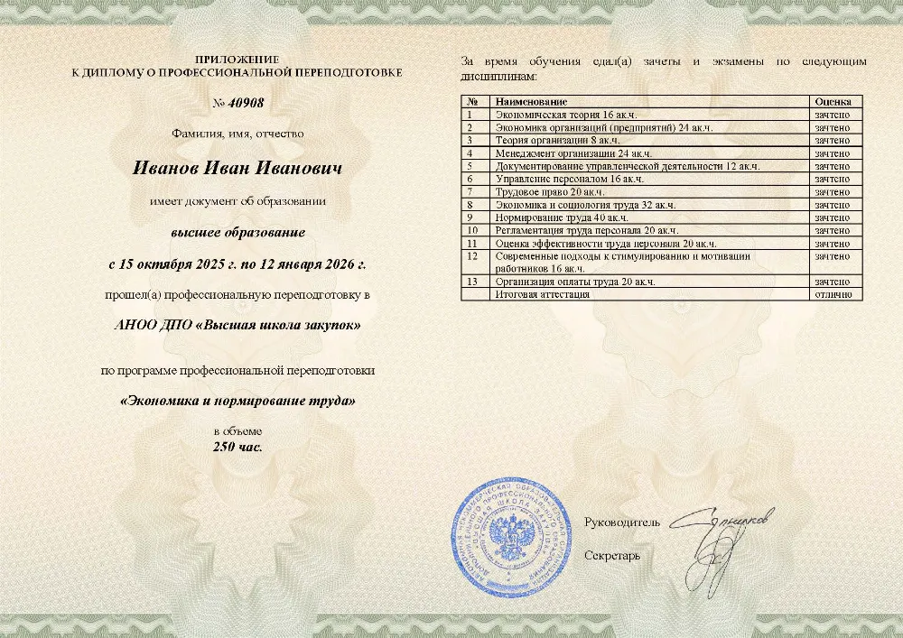 Это полноценная образовательная программа для получения дополнительной квалификации и освоения новой профессии. Для поступления также требуется высшее или среднее профессиональное образование (СПО). Итоговым документом является полноценный диплом о профессиональной переподготовке, который ценится на рынке труда. Программы являются наиболее объемными и начинаются от 250 академических часов, что обеспечивает глубокое погружение в специальность.