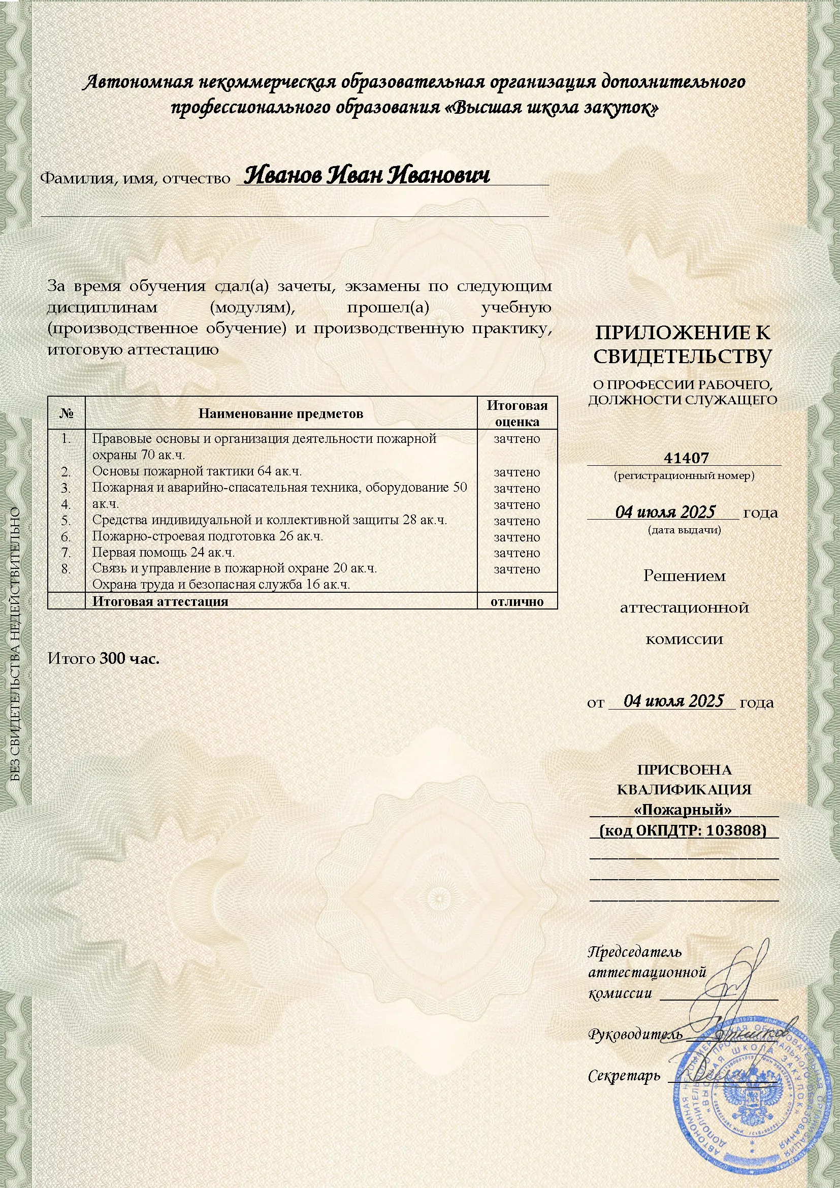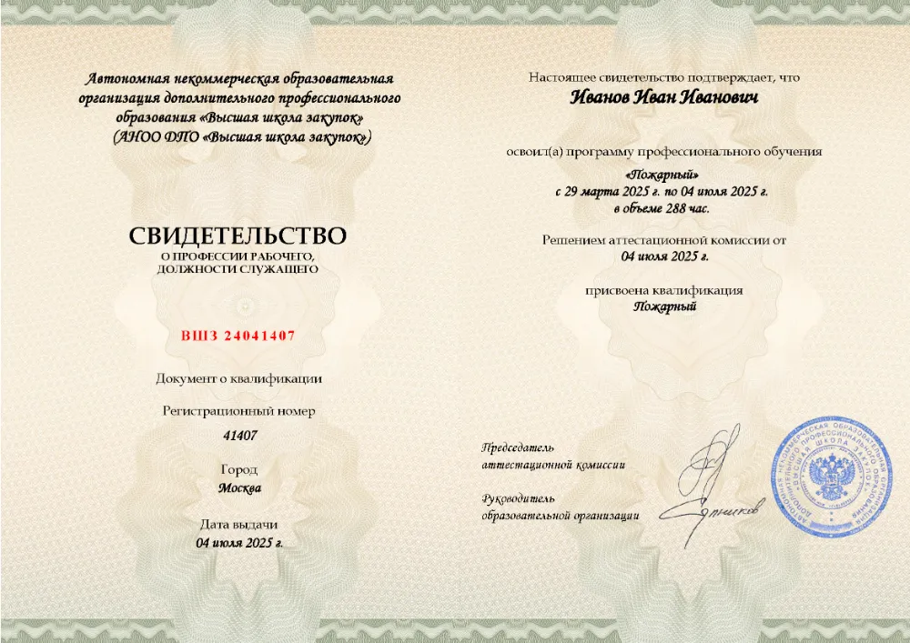 Профессиональное обучение, 300 академических часов, 8 модулей: законодательство и нормативные акты в области пожарной безопасности, тактика тушения пожаров и проведение аварийно-спасательных работ, устройство и использование пожарно-технического вооружения, оказание первой помощи. Онлайн-обучение в в Луганске с итоговой аттестацией.