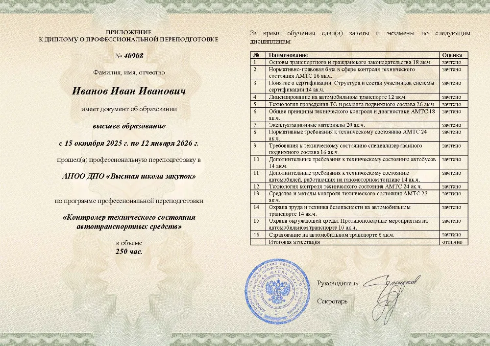 Профессиональная переподготовка, 250 академических часов, 7 модуля: нормативно-правовые основы и технологии контроля, охрана труда, экологии и требования к техническому состоянию транспортных средств. Онлайн-обучение в в Луганске с итоговой аттестацией.