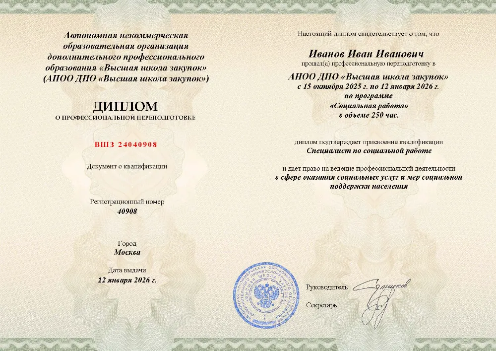 Программа профессиональной переподготовки (250 часов) для специалистов по социальной работе в в Луганске. Освойте государственное и муниципальное управление в социальной сфере, модели социальной политики, правовые механизмы помощи, волонтерство и внедрение информационных технологий.